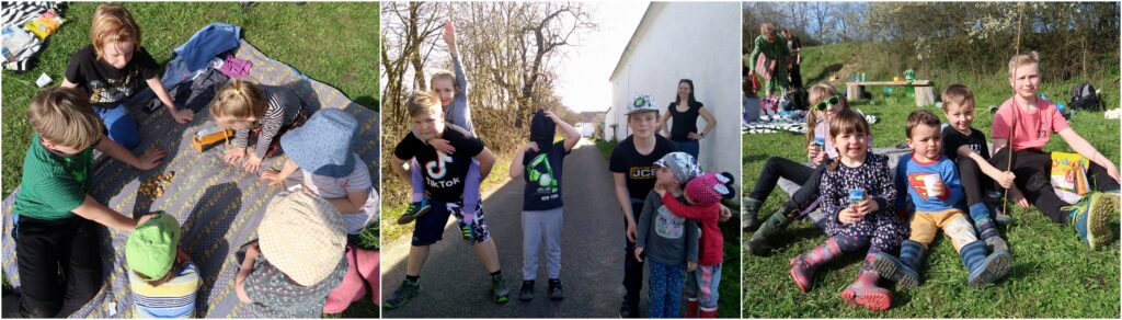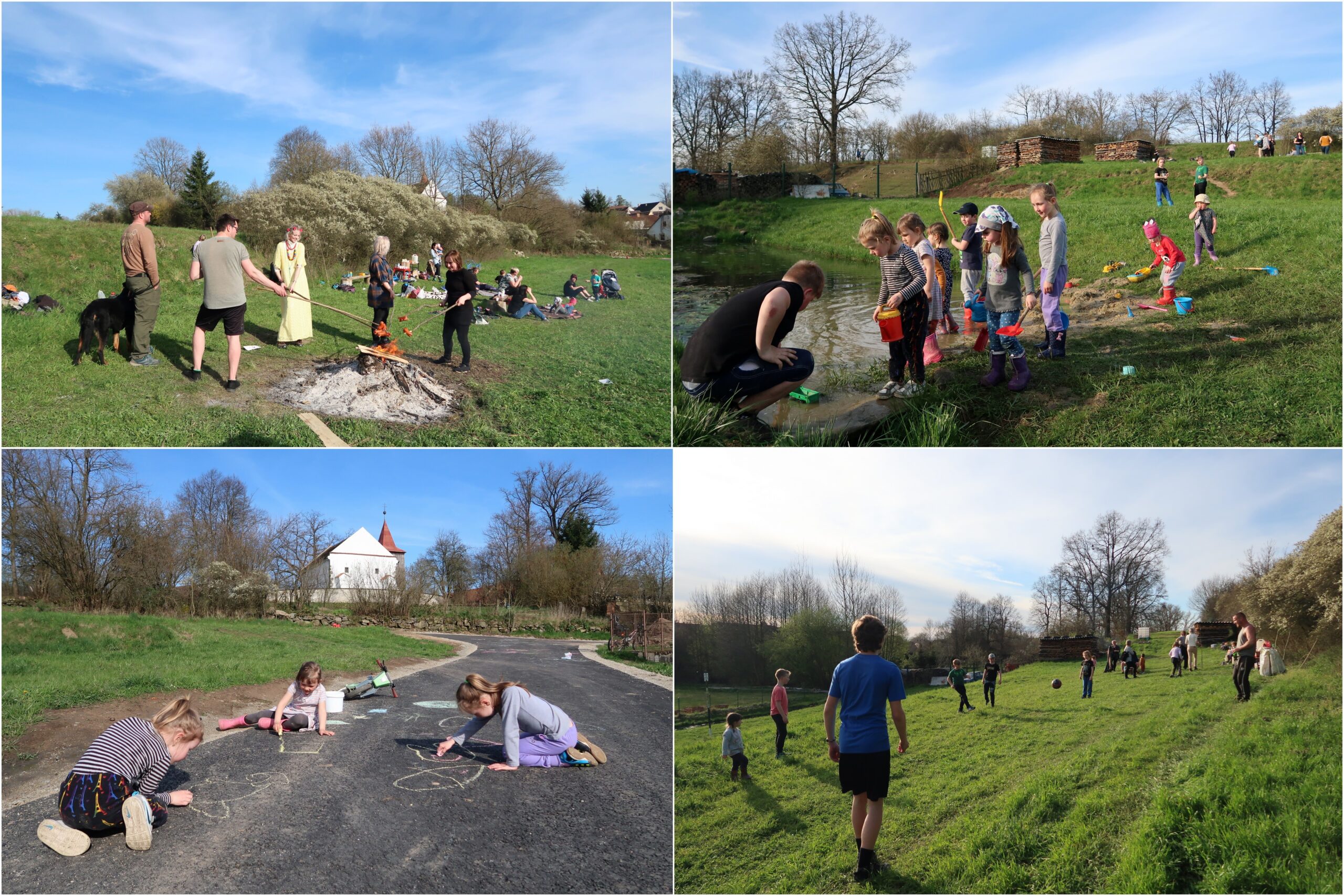 Společné setkání by v tuto chvíli mohlo skončit, ale nebyl důvod pospíchat domů. Sluníčko bylo stále při síle a děti si společně užily ještě spoustu zábavy u rybníčku, malováním křídami, hraním různých her a ještě si opekly buřty.