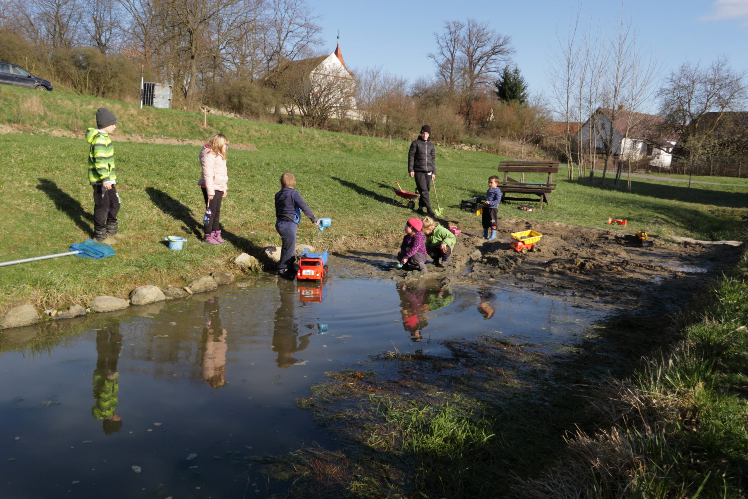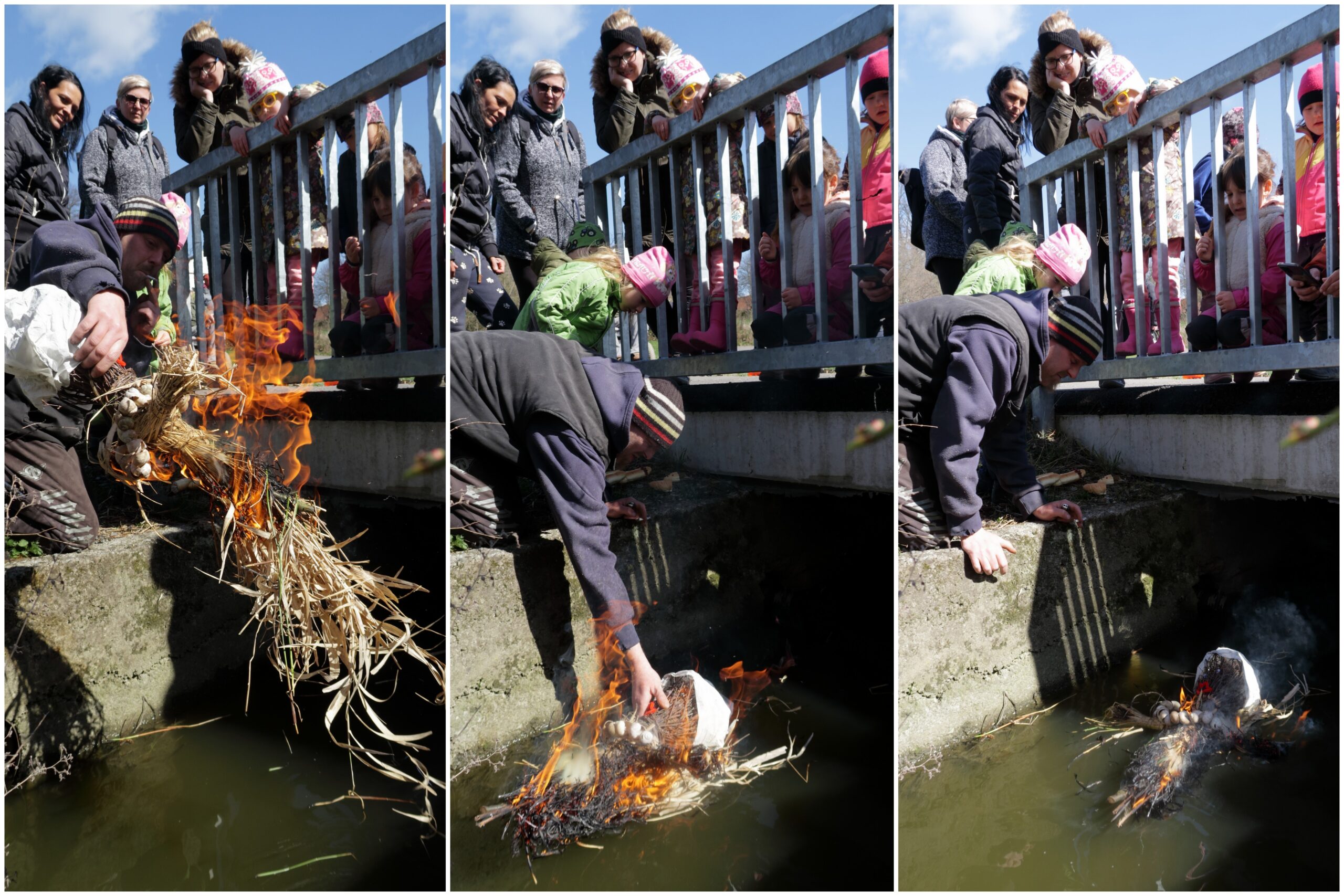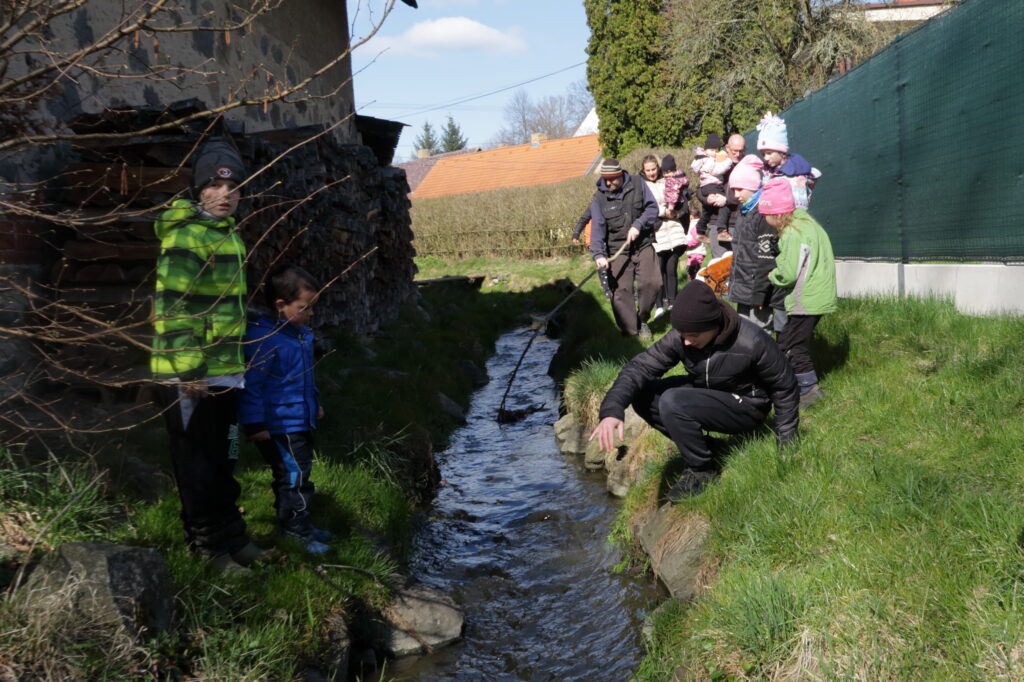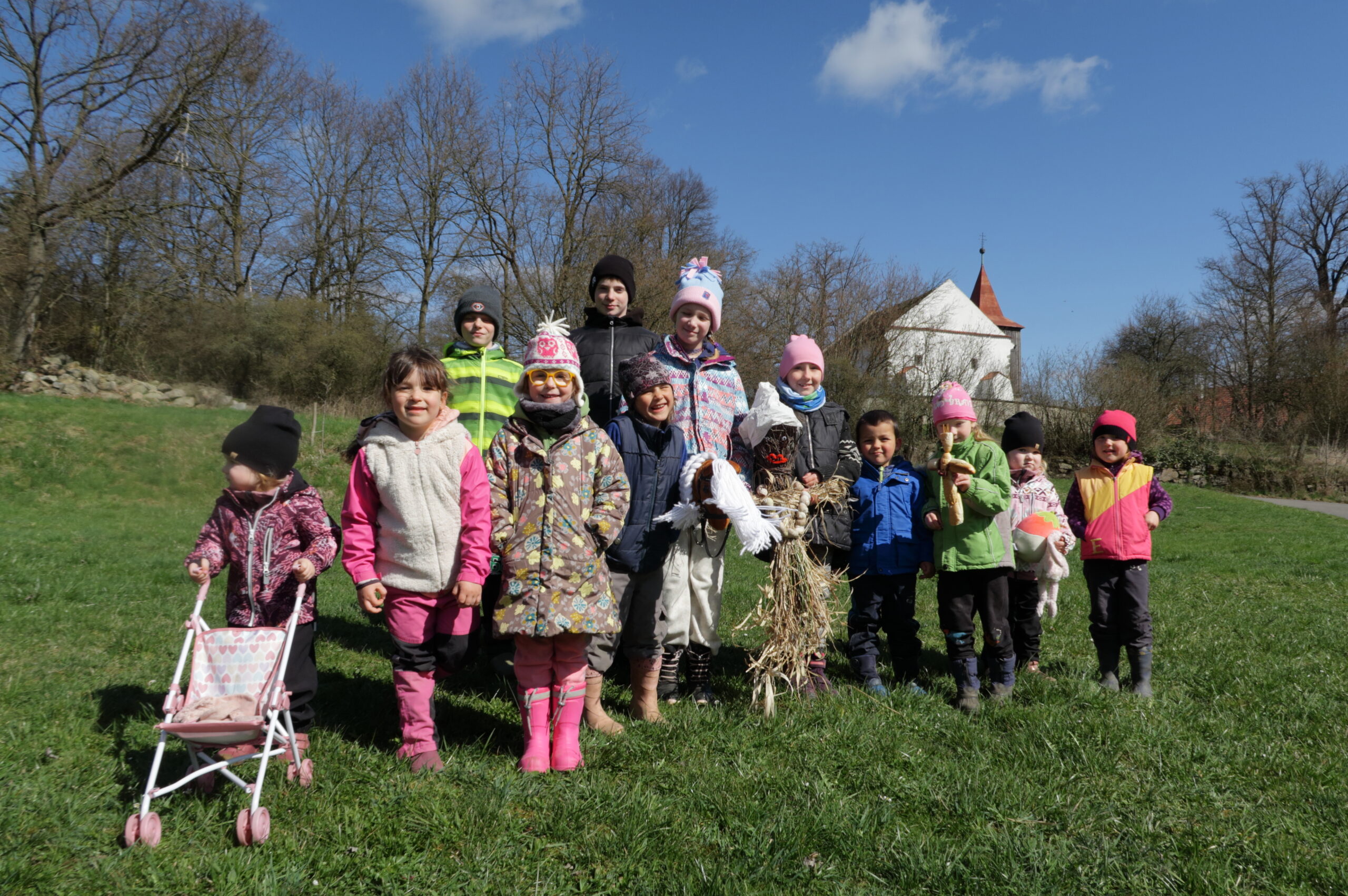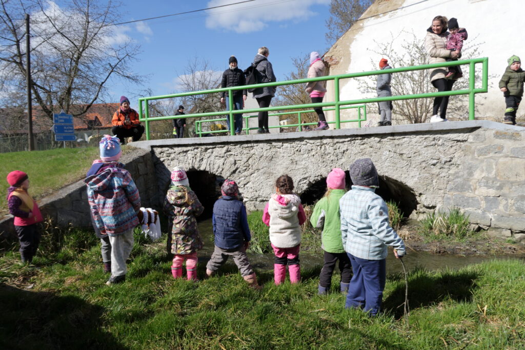 I letošní vynášení Morany bylo pro děti plné výzev. Zdálo se, že koryto potoka a aktuální průtok vody byly spíše na straně Smrtky a nastupujícímu jaru kladly řadu překážek.