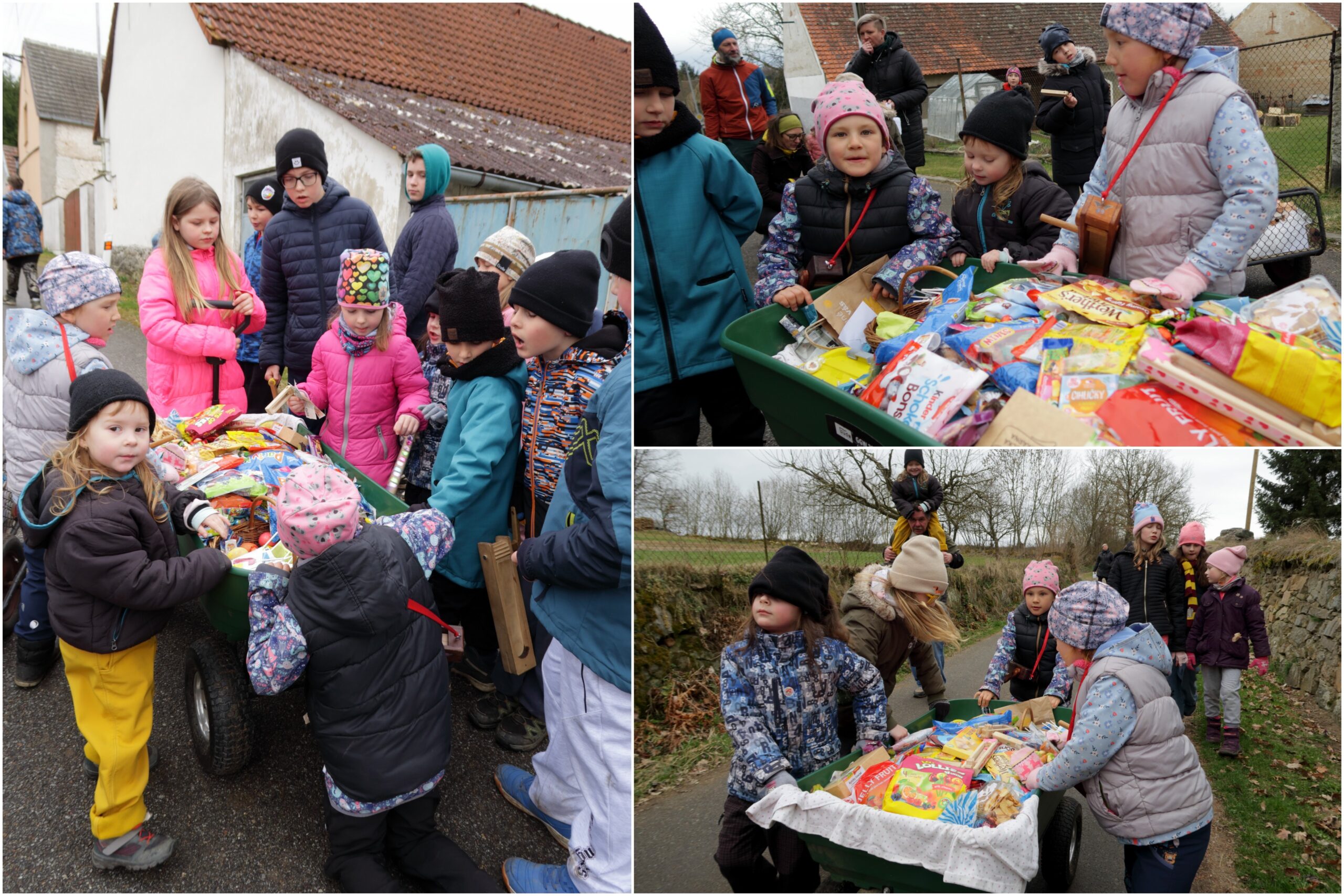 Sobotní koleda, vozík se rychle plní nejrůznějšími sladkostmi