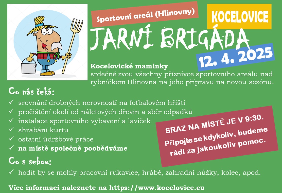 Tak jako se příroda probouzí po zimě k životu, tak se i areál nad rybníčkem Hlinovna v Kocelovicích oblékl do nového kabátu a pomyslně vkročil do nové sportovní sezóny. Dobrovolníci, malí i velcí, se hbitě oháněli hráběmi, listím naložená kolečka kmitala jako o závod, lavičky dostaly nový nátěr, na svá místa byly zavěšeny sítě nejrůznějších typů a zátěžovým testem prošla i opičí dráha. Nově budou potěšeni příznivci kuželek a basketbalu.